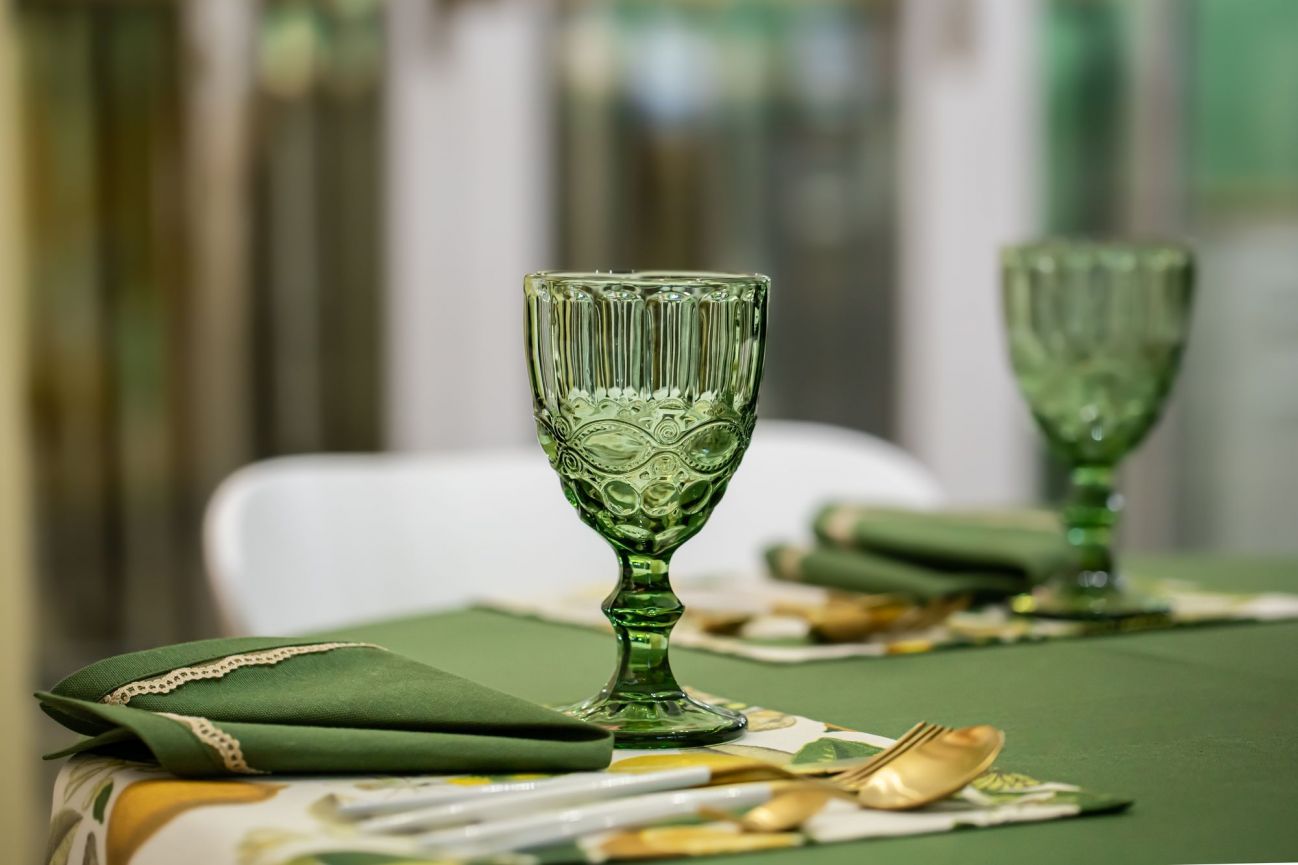 Накройте стол керамическими тарелками и мисками с неровными грубыми формами, плетеными корзинами для хлеба, винтажными стаканами из темно-зеленого стекла и деревянными столовыми приборами. Для осенних обедов поставьте на стол плетеные корзинки для хлеба, винтажные стаканы из темно-зеленого стекла и деревянными столовыми приборами.