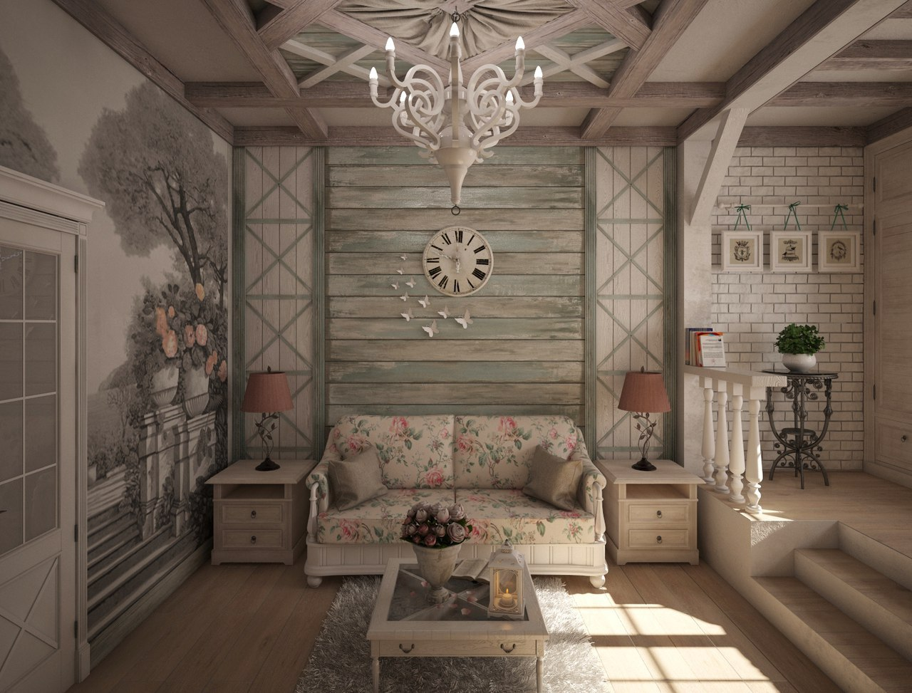 Прованс. Отличается пастельными тонами, цветочными принтами и использованием натуральных материалов. Прекрасно смотрится в квартирах с большими окнами. В темных помещениях с низкими потолками может создавать эффект загроможденности.