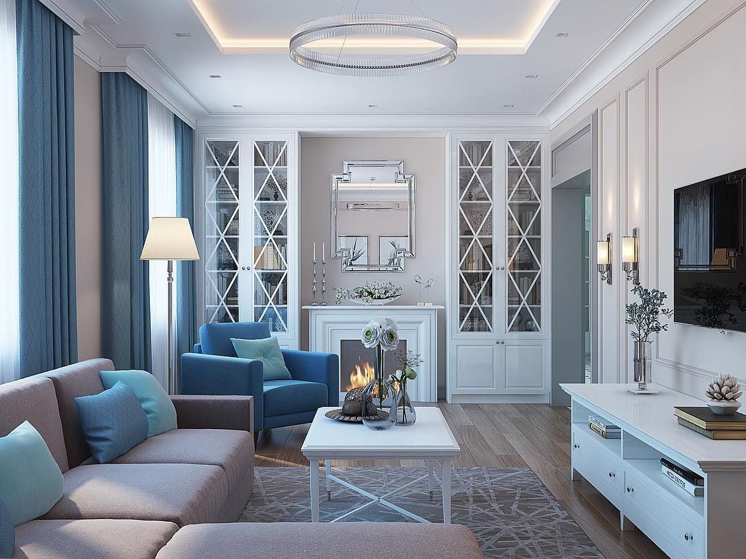 Неоклассика. Сочетает традиционную отделку с современной мебелью. Требует просторных помещений с высокими потолками. В малогабаритных квартирах может выглядеть громоздко.