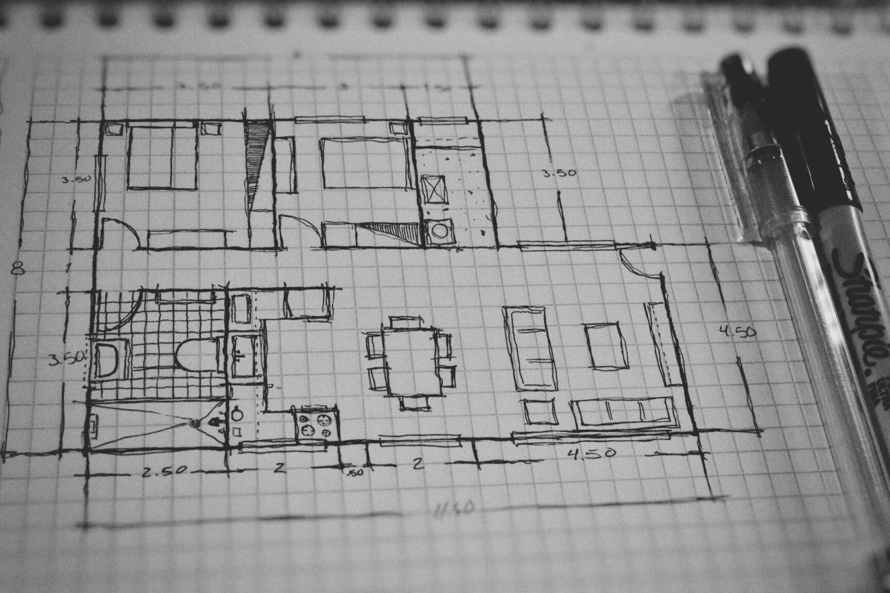 Все измерения следует наносить на план помещения, используя миллиметровую бумагу или тетрадные листы. Если комнаты имеют простую форму, можно обойтись и эскизом, нарисованным от руки.