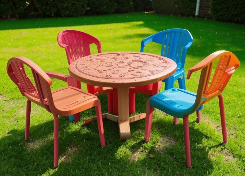 Все-таки стоит помнить, что такая мебель чувствительна к перепадам температур, от ярких солнечных лучей она теряет яркий цвет, а от мороза может потрескаться. Но такую мебель удобно складывать, хранить и ухаживать. Она имеет малый вес и низкую стоимость. Из пластика делают все: столы и стулья, шезлонги, кресла, скамейки и даже целые детские игровые зоны.