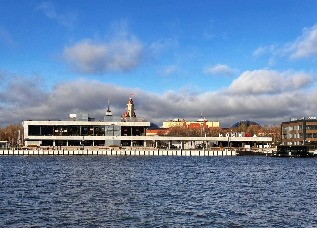 Речной маршрут включает 9 причалов: «Киевский», «Трехгорный», «Сити-Багратион», «Краснопресненский парк», «Сити-Центральный», «Кутузовский, «Береговой», «Сердце столицы», «Парк Фили».