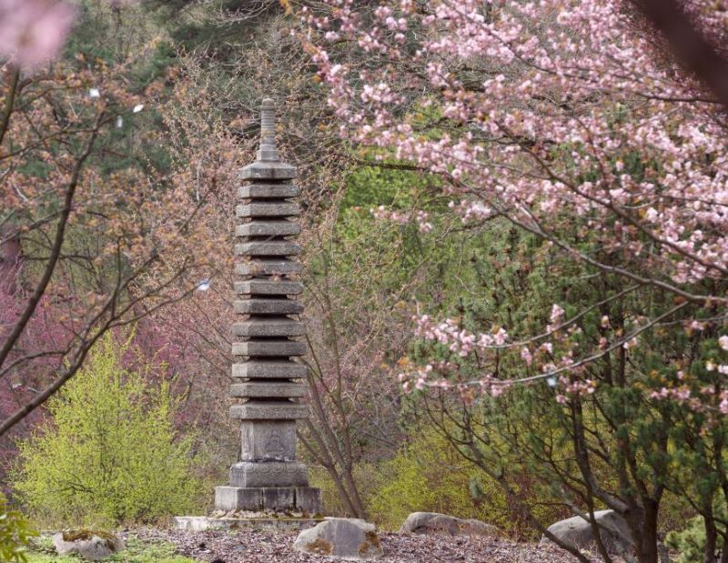 В этом месте есть три вида сакуры: вишня Саржента, или сахалинская, которая может достигать в высоту до 12 метров, вишня курильская и вишня пильчатая. Там уже также скоро распустятся яблони, груши, сливы, абрикосы, черешни, миндаль, черемуха. Затем придет очередь сирени – ее в этом ботаническом саду более 50 сортов. Во второй половине мая своим видом и ароматом гостей порадуют рододендроны, вишня, магнолия и гигантские древовидные пионы.